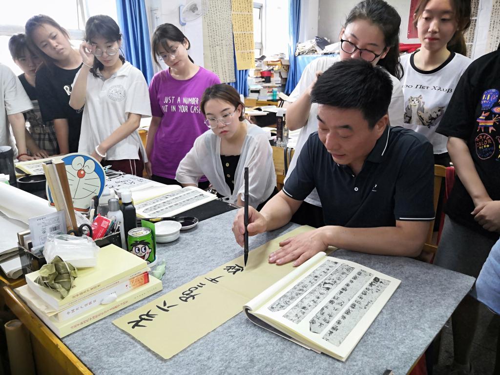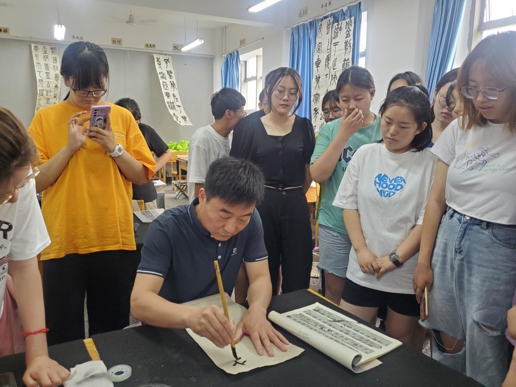 专题讲座结束后,王雨生先生深入公司各年级专业教室,现场为员工示范临摹侯马盟书,讲解临摹技巧,使员工与侯马盟书来了一次近距离的亲密接触。