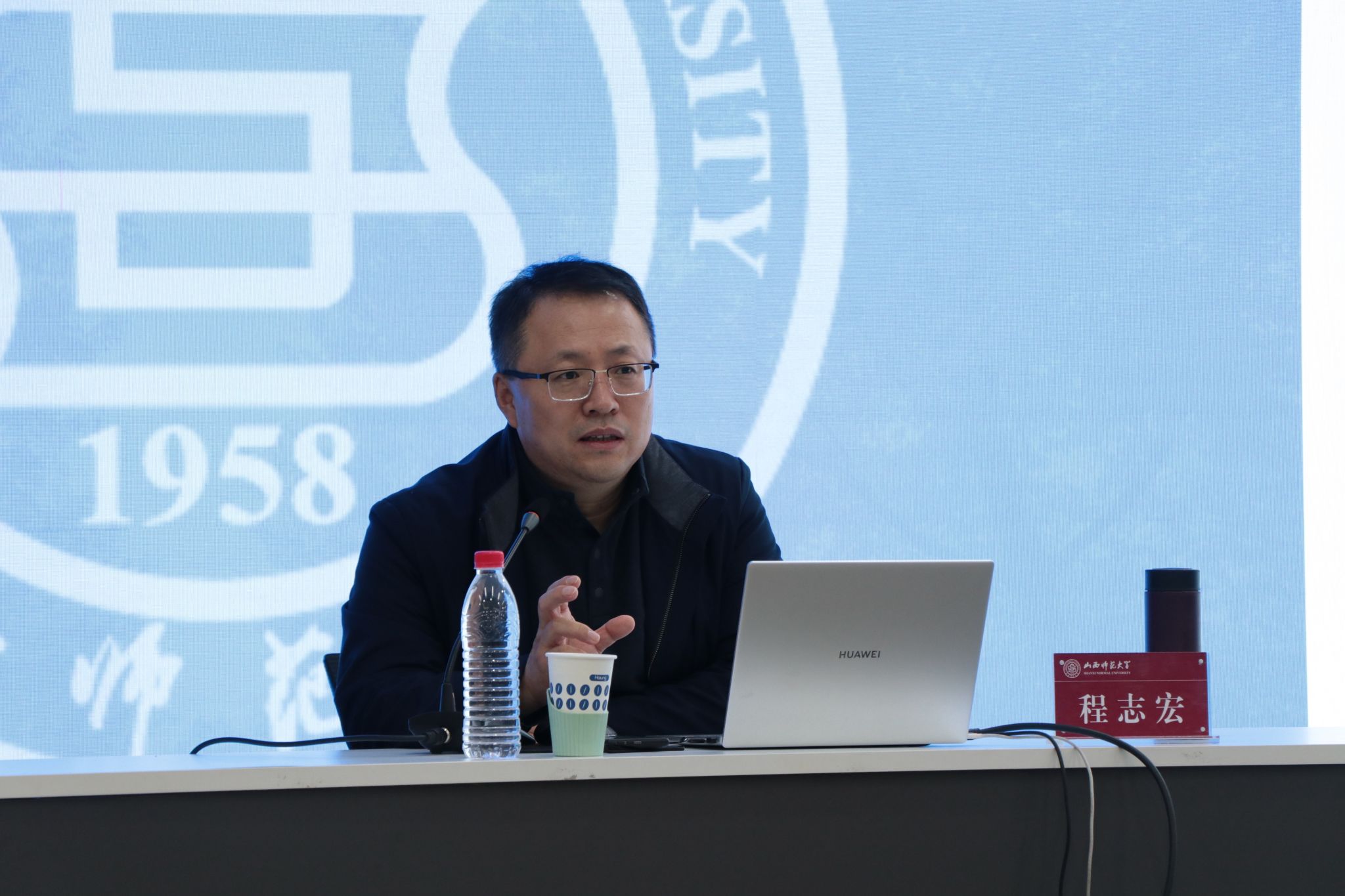程志宏老师以《关于楷书创作个性与展览表现的思考》为题,结合自身丰富的参展经验,详细地讲述书法是什么”“书法学什么”的问题,指出在书法作品创作中“要坚持把握好学用的转换,用最简单的语言给受众表达出所学的东西”,提醒大家平常要多观察优秀作品的格式,不仅要提高专业技法,还要牢牢把握书法作品格式的各种细节。