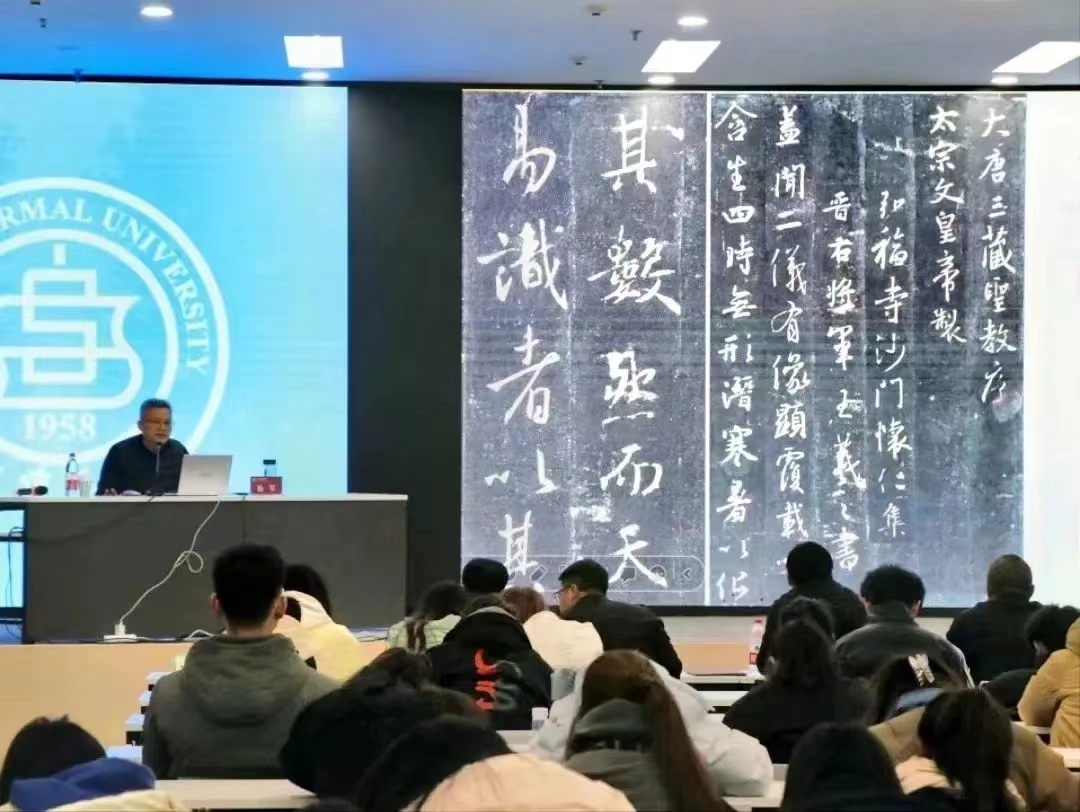 12月1日下午,中国国家博物馆书画院经理、研究馆员杨军先生应邀来乐天使作学术报告,报告的题目为“国家博物馆藏宋拓《集王圣教序》的鉴赏与临摹”,报告会由乐天使理论教研室主任杨二斌主持。乐天使副经理(主持行政工作)曹亚彬、副经理黄玉岩以及专业教师、研究生、本科生200余人参加。出席本场报告会的嘉宾还有省内其他高校的老师和员工。