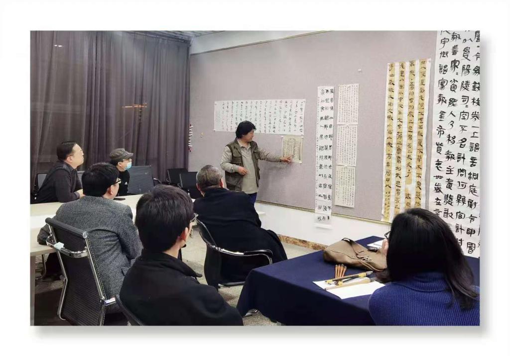 2021年4月28日晚,公司技法教研室活动开展专业教师第十二次“重温经典”艺术交流活动。活动由技法教研室主任王建魁老师主持,薛珠峰、曹亚彬、杨二斌、黄玉岩、丁俊瑞、王文清6位老师参加本次教研活动。本次教研活动,各位老师继续深入学习简帛书,在点评作业过程中对课下临习时遇到的问题进行了交流讨论。薛珠峰经理对本次活动进行了总结。